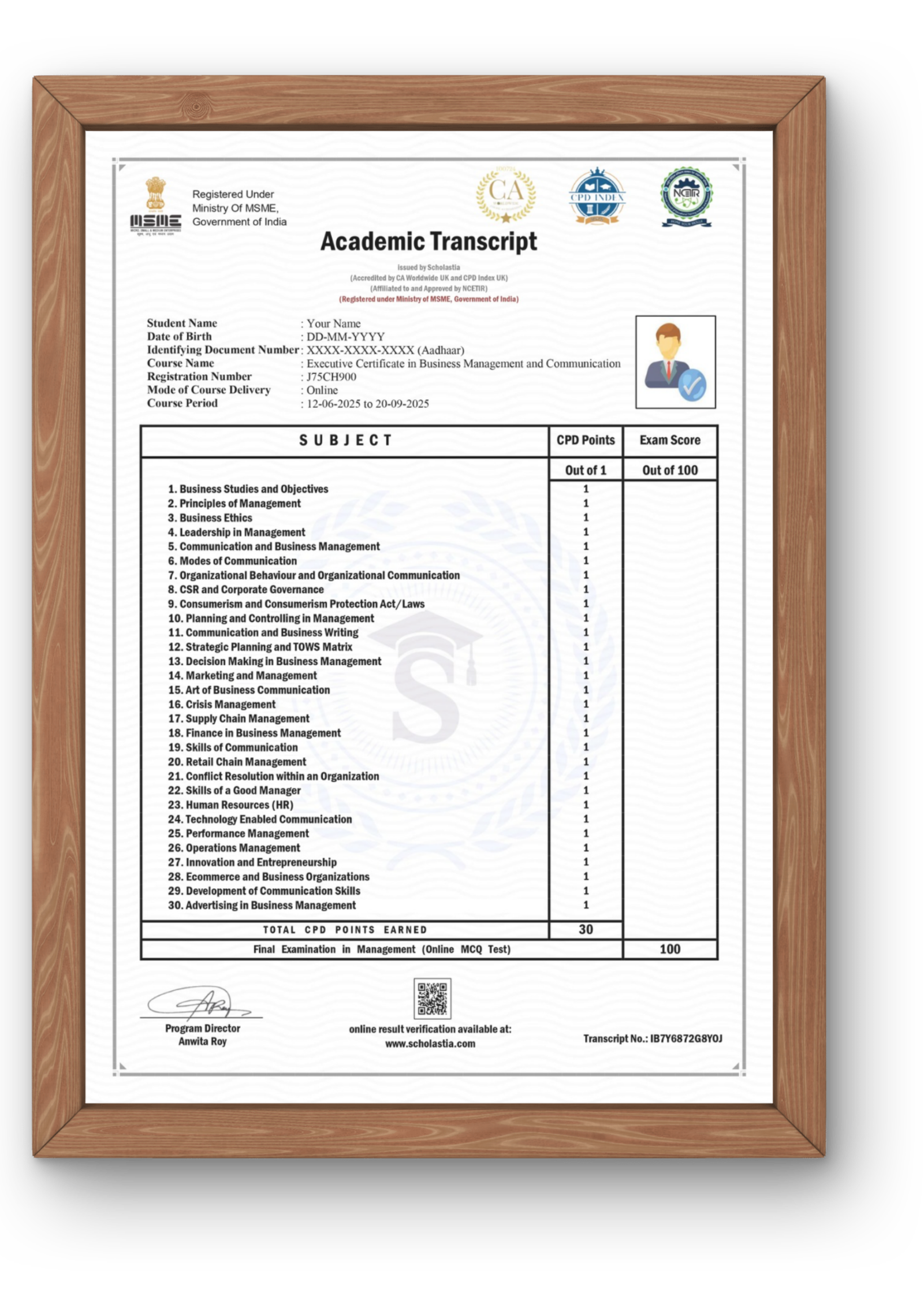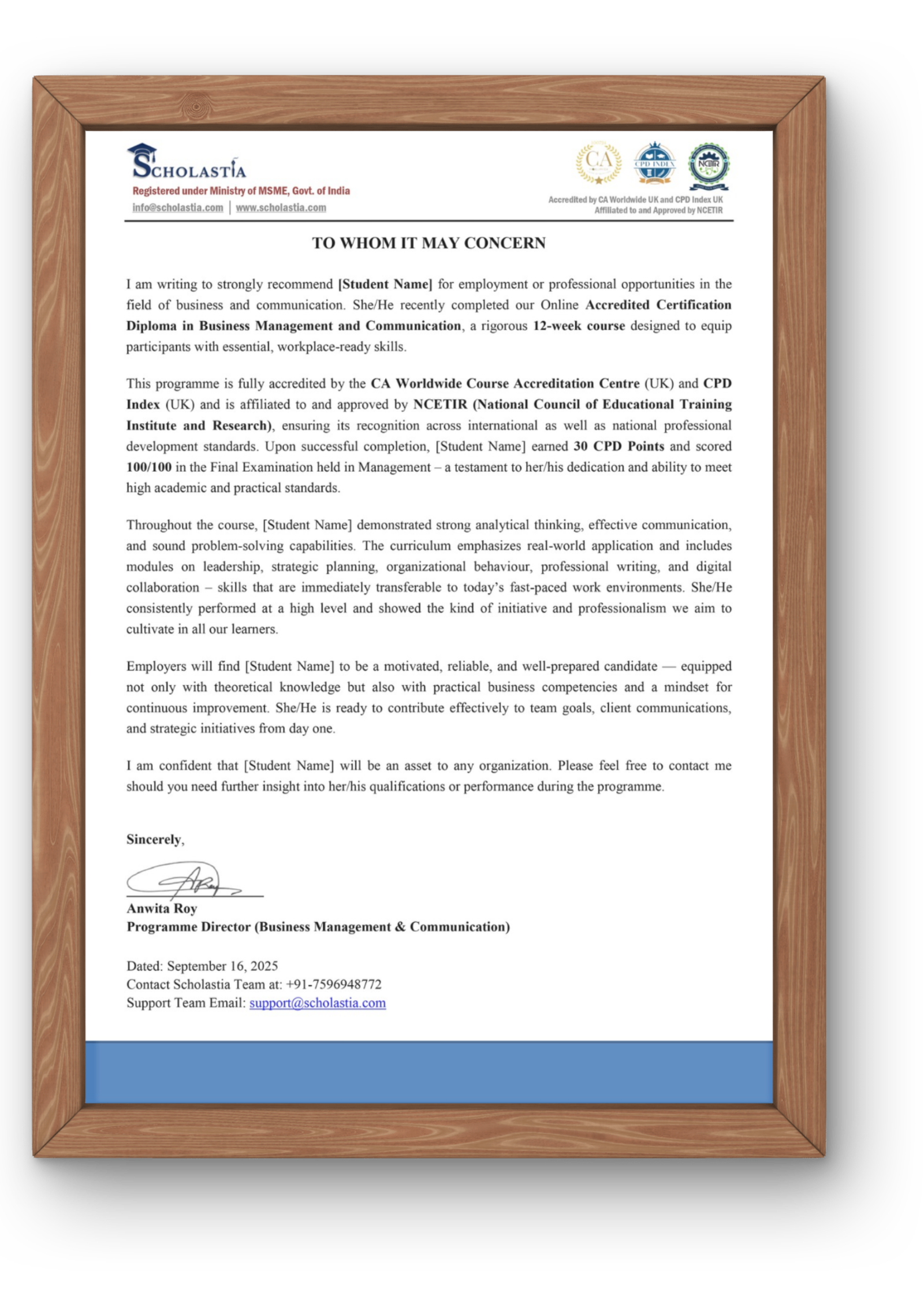 This course bears international and national accreditations from CA Worldwide, CPD Index, and NCETIR (National Council of Educational Training Institute and Research)