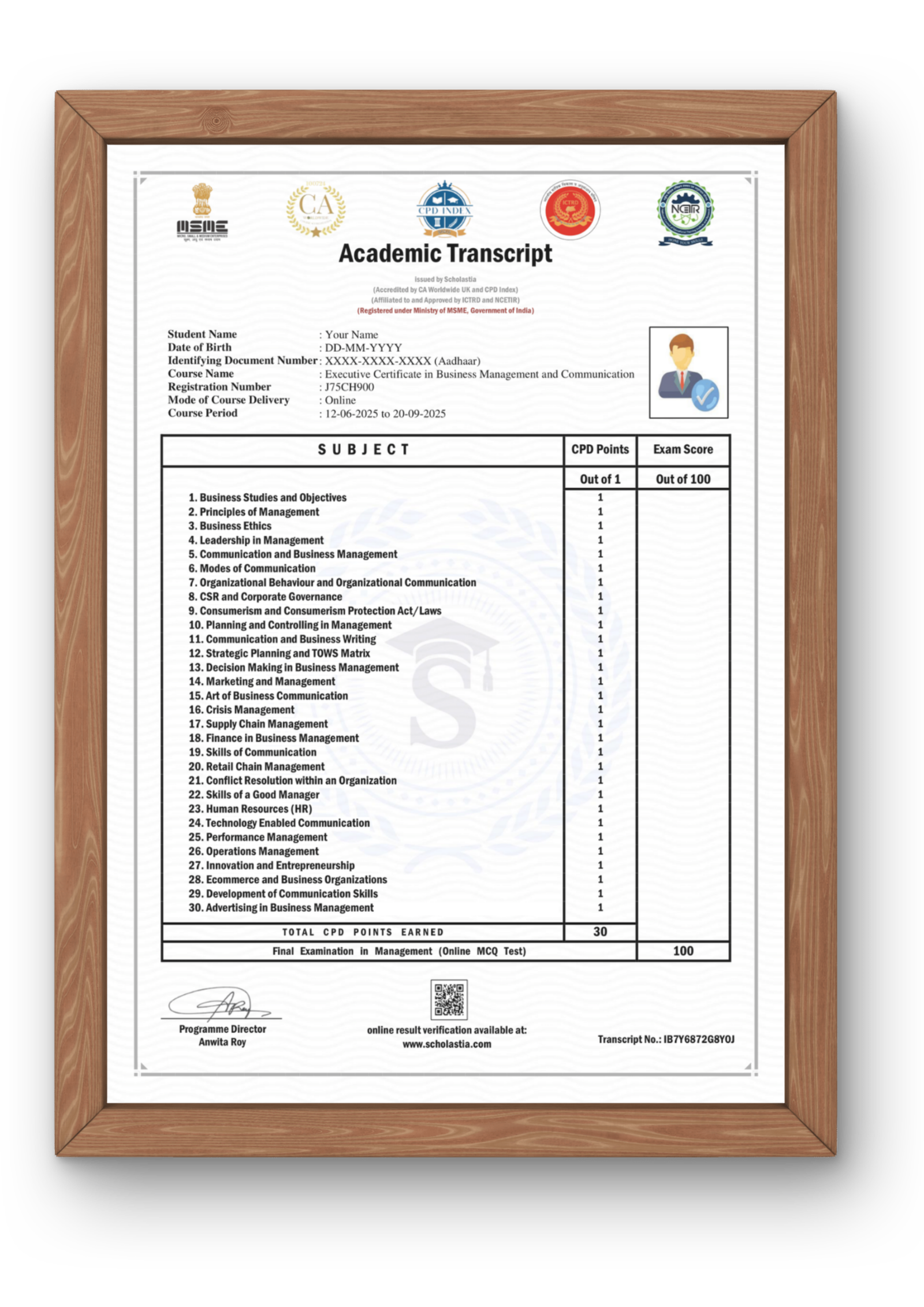 This course bears international and national accreditations from CA Worldwide, CPD Index, and NCETIR (National Council of Educational Training Institute and Research)